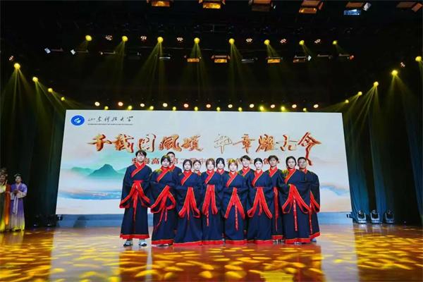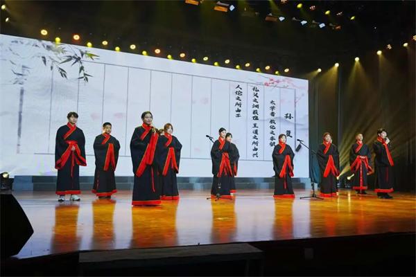 開幕式在山東科技大學西校園禮堂隆重舉行,精彩的節(jié)目展演將現(xiàn)場氣氛推向高潮。泰山雅樂團深情演繹朗誦《宋初三先生寄語》,表演者們慷慨激昂,展現(xiàn)出了宋初文人的壯志豪情,讓大家沉浸在古詩文朗誦中,領略傳統(tǒng)文化的獨特韻味。